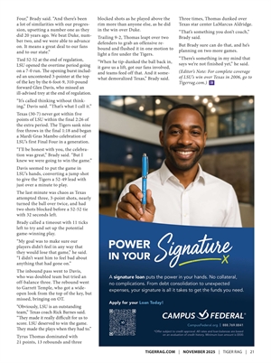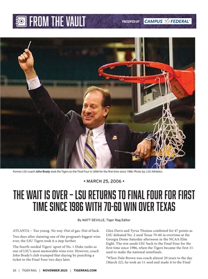 Go to page 23: THE WAIT IS OVER – LSU RETURNS TO FINAL FOUR FOR FIRST TIME SINCE 1986 WITH 70-60 WIN OVER TEXAS