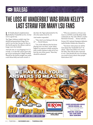 Disclaimer: Tiger Rag is not affliated with Louisiana State University, its athletic department, alumni association, fund raising clubs and foundations or any division of the University system. It is privately owned and operated with complete independence from the university and other entities. The views expressed herein are those of the newspaper staff and its contributors and not necessarily those of the university or its employees.