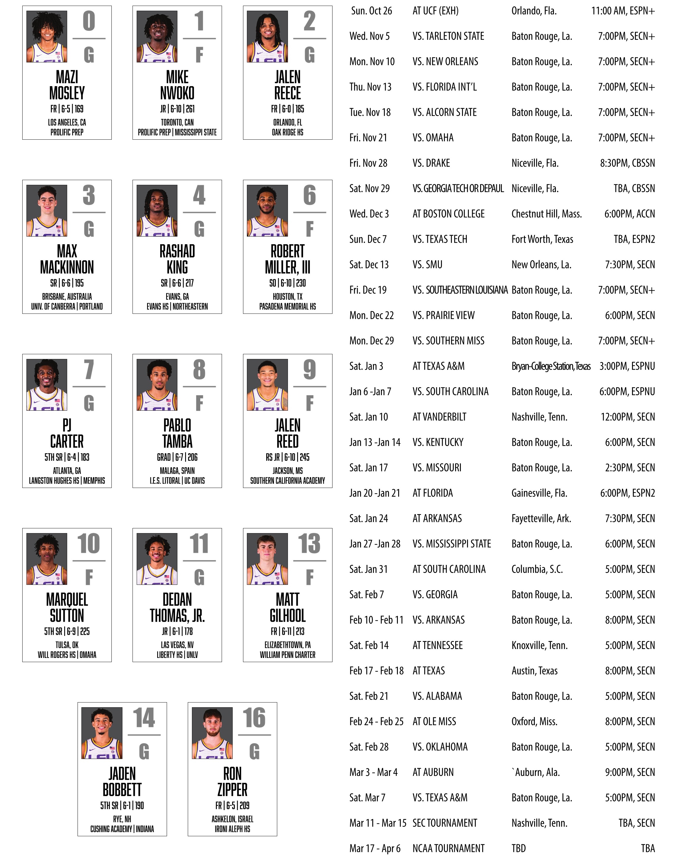 MEN’S BASKETBALL ROSTER & SCHEDULE</b>