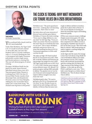 Go to page 59: THE CLOCK IS TICKING: WHY MATT MCMAHON’S LSU TENURE RELIES ON A 2026 BREAKTHROUGH