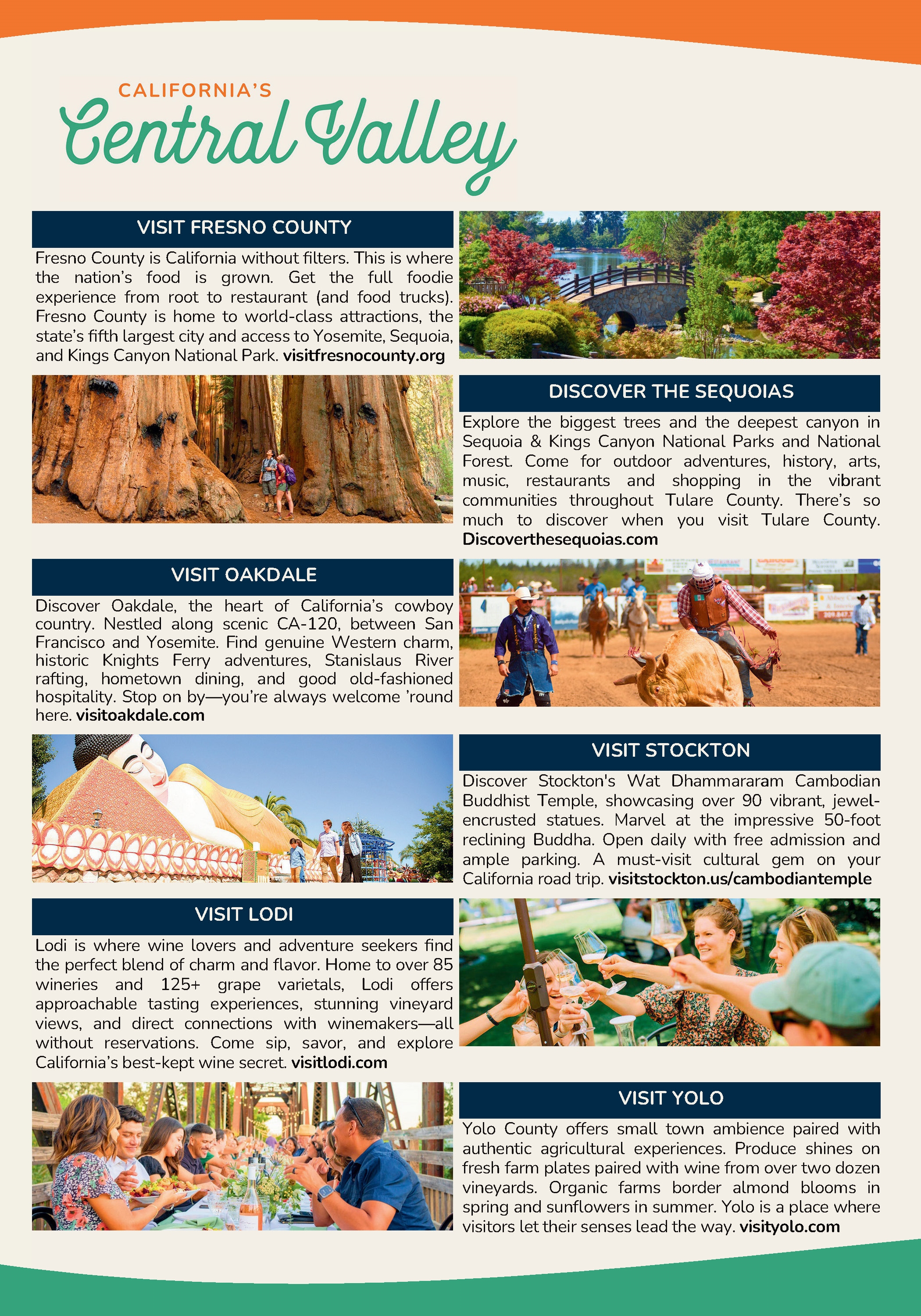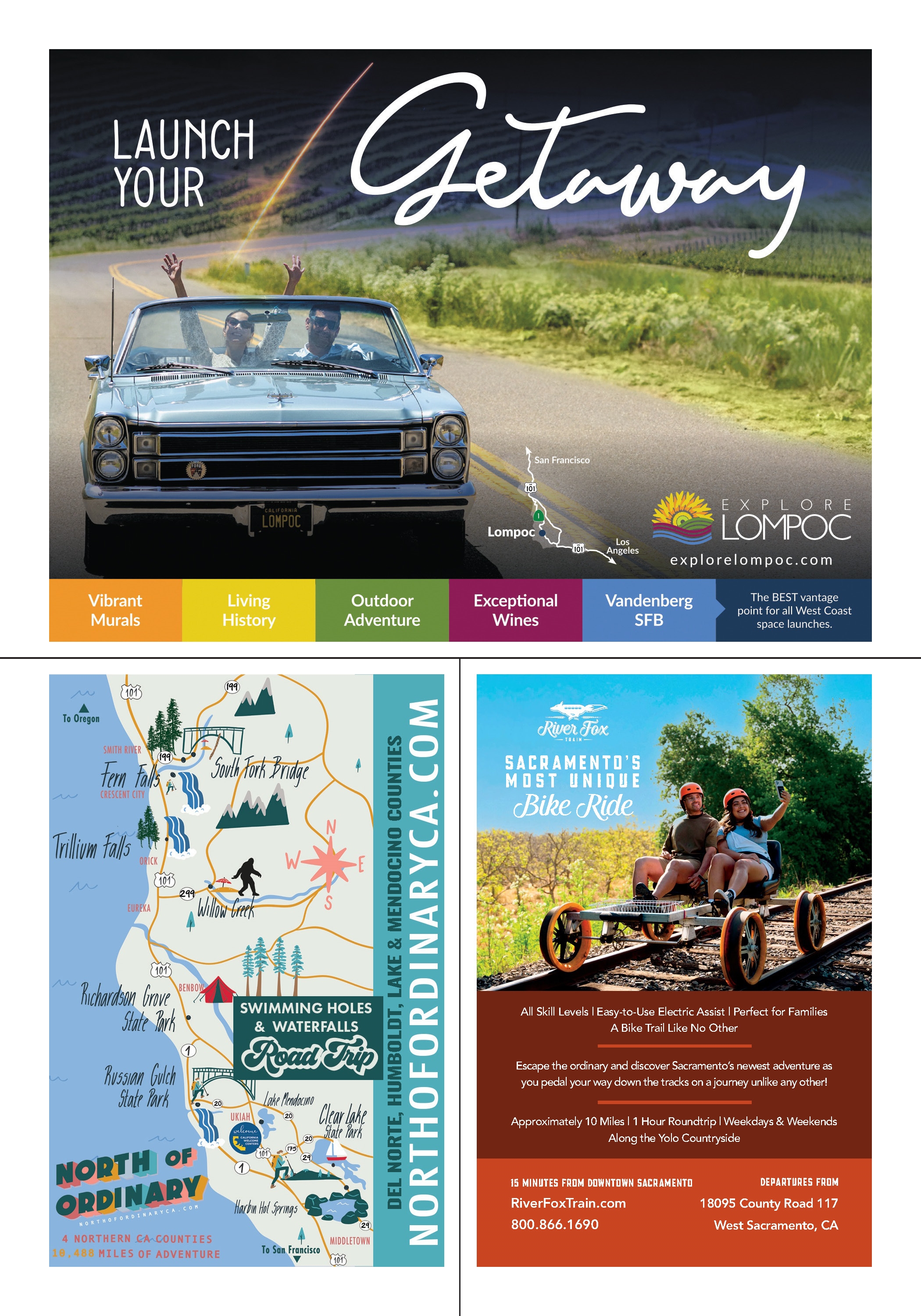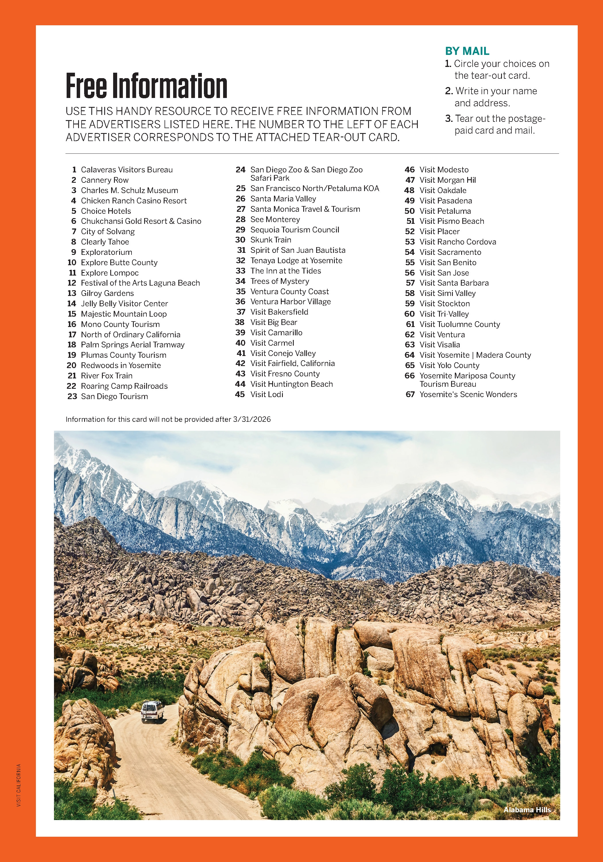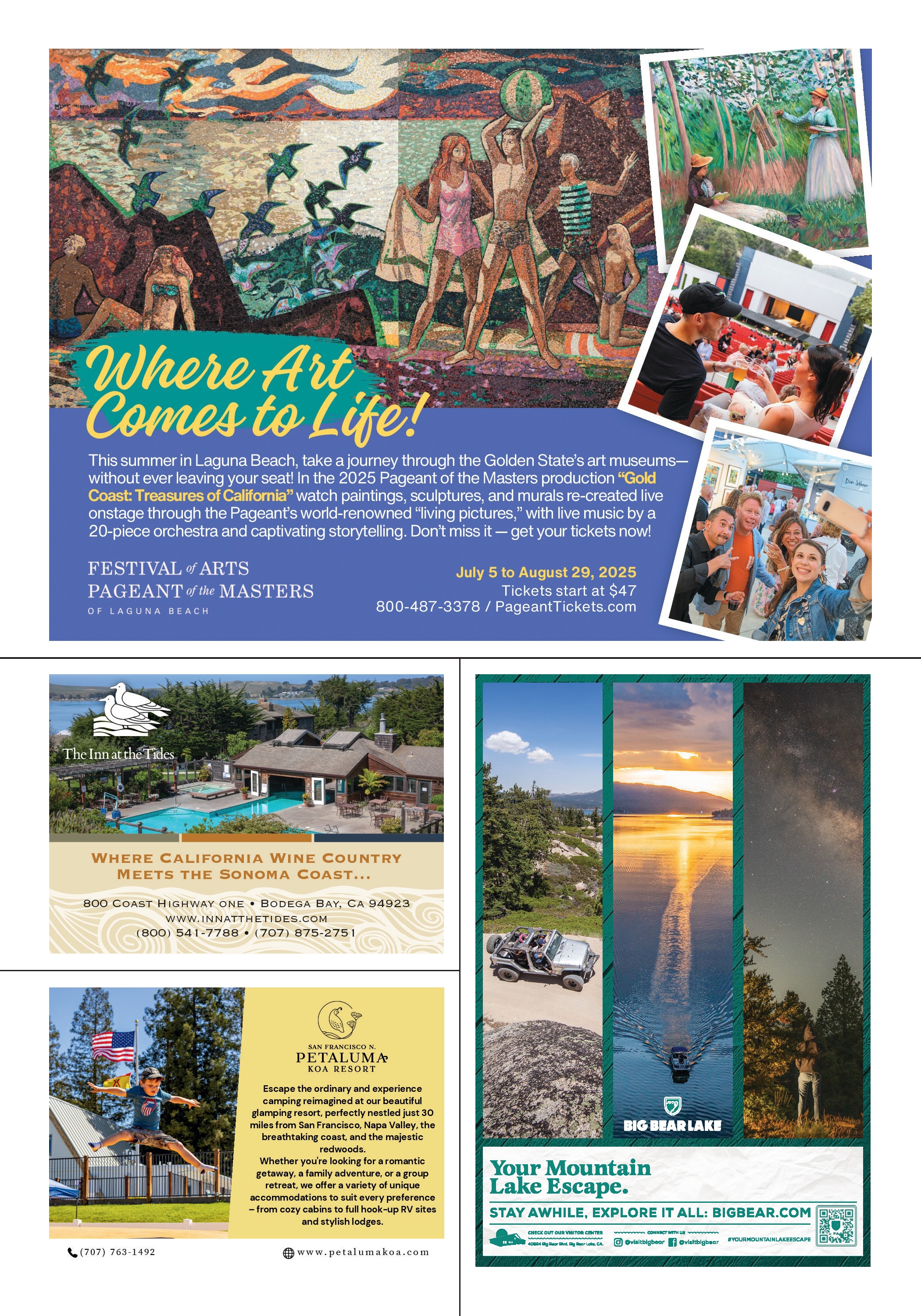 This guide is published at no expense to taxpayers. Advertisements and articles appearing in this publication do not constitute an endorsement of products or services by the State of California or Visit California. Information, including prices, dates, and hours, was correct at time of publication but should be verified in advance.